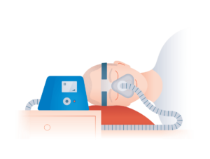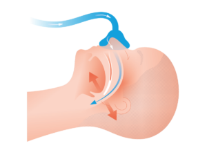 Pomocí přístroje a nosní masky je v dýchacích cestách vytvářen přetlak, zabraňuje popisovanému uzávěru dýchacích cest a udržuje je průchodné (obrázek č. 4).